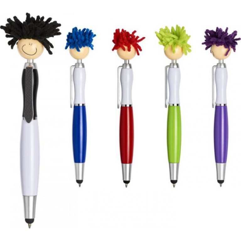 Mop Head stylus ballpoint pen. Stylus ballpoint pen with click action mechanism. Plastic.