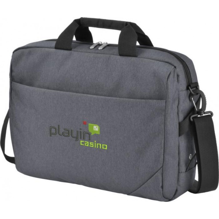 Navigator 14″ laptop conference bag. Exclusive design laptop bag with zippered front pocket including organiser, zippered main compartment with 14″ laptop compartment and tablet compartment. Removable and adjustable shoulder strap. Carry handles. Trolley tunnel on backside. Elastic tunnel and loop on the side at the bottom can be used to secure your section umbrella or water bottle. . 600D High density polyester. 600D of High density polyester.