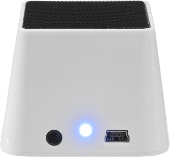Portable Bluetooth® speaker with internal rechargable battery which provides up to 4 hours of non stop music. Speaker can be connected by Bluetooth® or 3,5 mm audio cable. Audio and charging cable included. ABS Plastic.