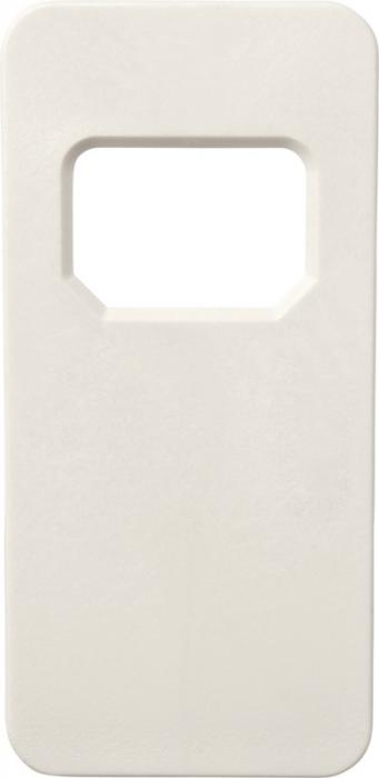 Rectangular-shaped bottle opener for drinks such as soda bottles and beers. GPPS Plastic.
