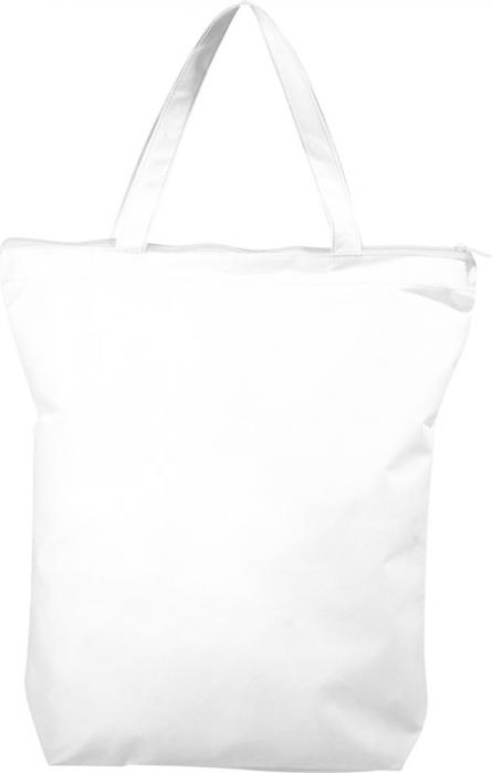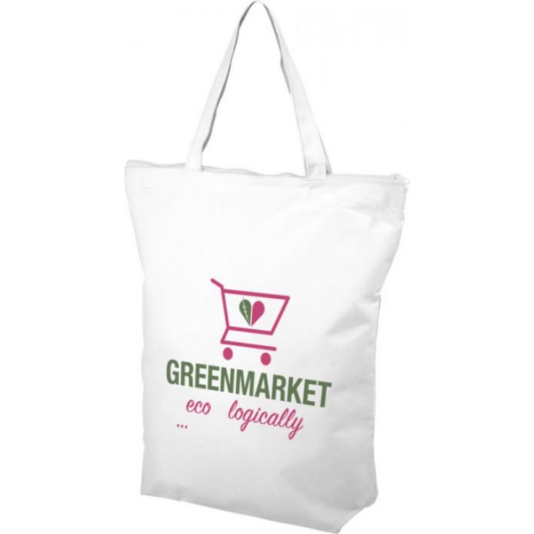 Zippered non-woven bag with stitched finishing and a dropdown handle length of 19 cm. A convenient model a bright colour range. PP Plastic non woven.