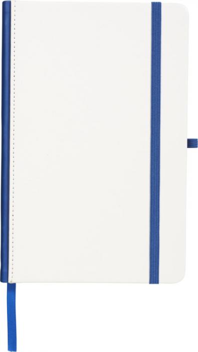 Imitation leather A5 (14.2 cm x 21.4 cm) notebook (leatherette) with elastic band, ribbon marker, pen loop and accordion back pocket. Includes 96 sheets of lined cream paper in 80 g/m2 and is offered in a Journalbook white sleeve. Leatherette paper.