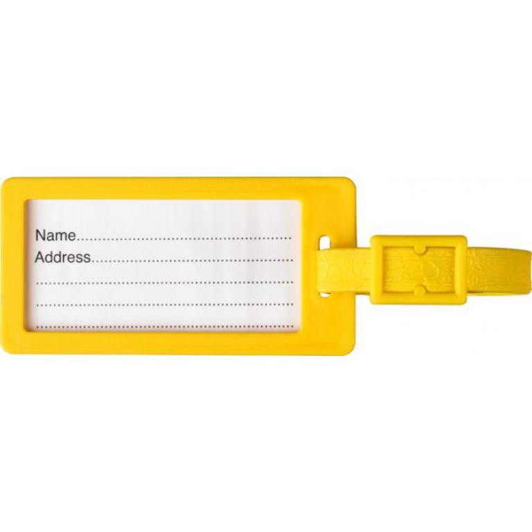 A hard-wearing luggage tag complete with paper insert, a clear protective cover, and a matching plastic strap. ABS Plastic.