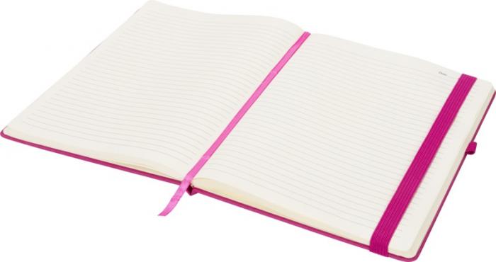 The Rivista Notebook range has a stylish modern design with a high quality, tactile cover, ideal for adding your company logo and details. It’s available in a selection of contemporary colours. Features include an elastic closure, ribbon page marker, pen loop and storage pocket to the inside back cover. Includes 128 sheets (70g/m2) cream lined paper. PU Plastic.