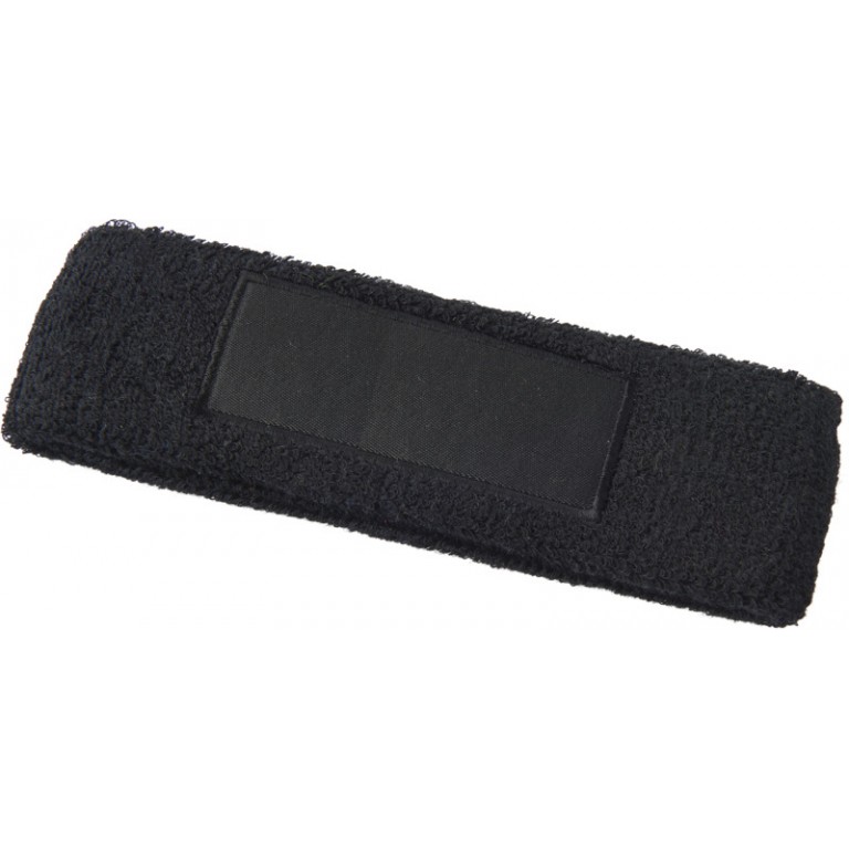 Roger fitness headband. Soft and absorbent elastic cotton headband with rectangular 90x30mm patch for decoration. Cotton.