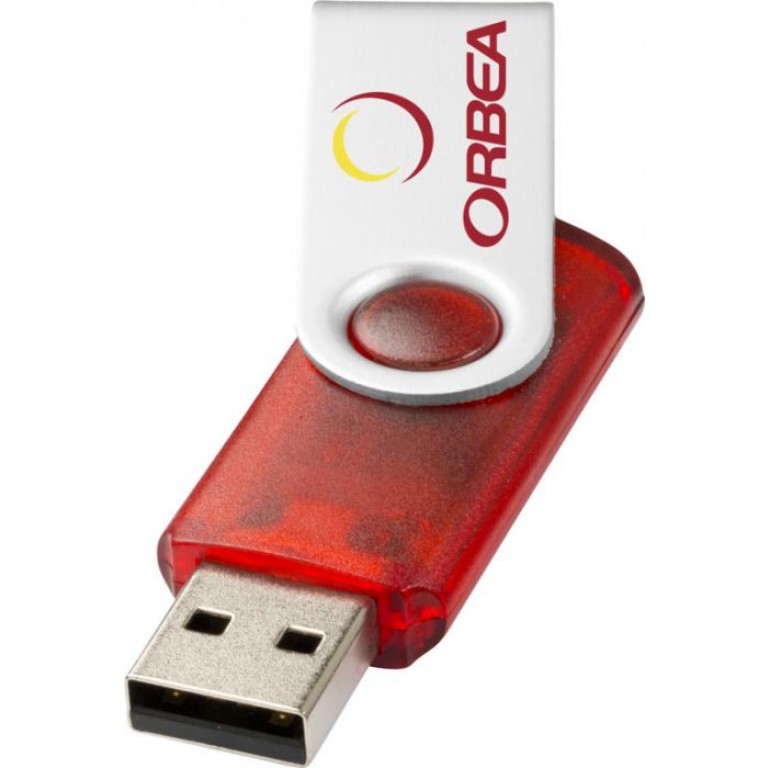 Rotate-translucent 2GB USB flash drive. For your convenience blank orders are delivered with separated gift boxes. Plastic, Aluminium.