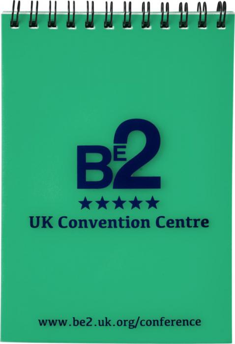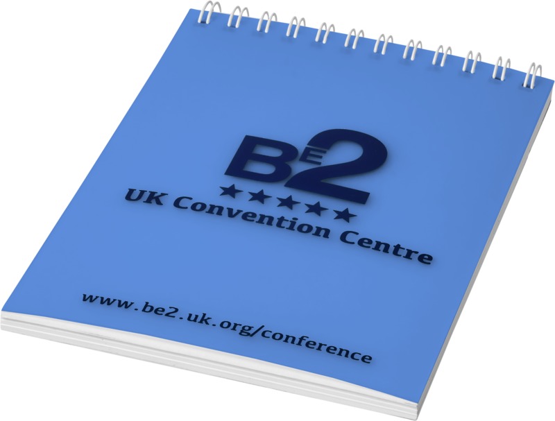 A new addition to our popular Notebook range. This versatile new notebook has a smooth black PU cover, with brightly coloured chunky wire and matching pen loop. Includes 160 sheets (70g/m2) cream lined paper. PU Plastic, Metal.
