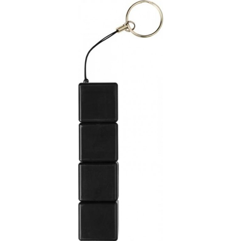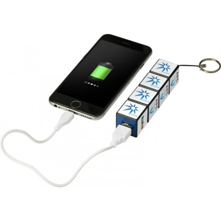 This power bank has Rubik’s® style tiles for an eye-catching design. Features a 2500 mAh rechargeable lithium-ion battery, providing power to charge smartphones, MP3 players and many other devices. It also features a keychain for easy carrying. Includes a USB to Micro USB charging cable. Input 5V/1A, output 5V/1A. ABS Plastic.