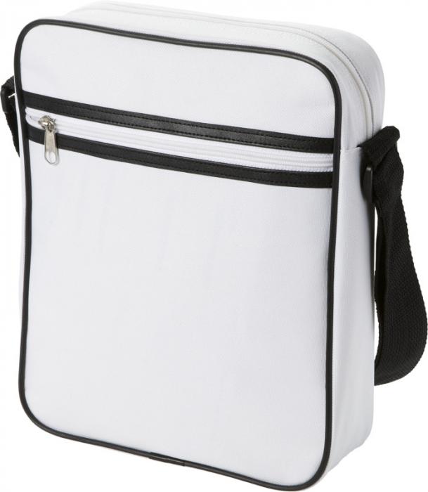 Trendy city bag with adjustable ‘hook & loop’ closure mono shoulderstrap, zipper closure main compartment and front zipper pocket. 600D of Polyester.