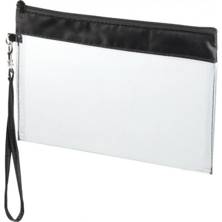 PVC see-through travel pouch with wrist strap. PVC.