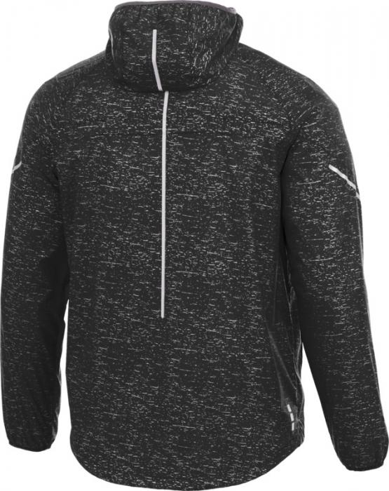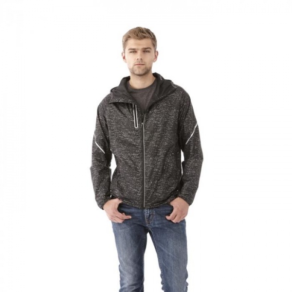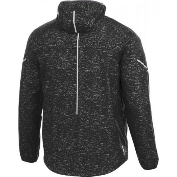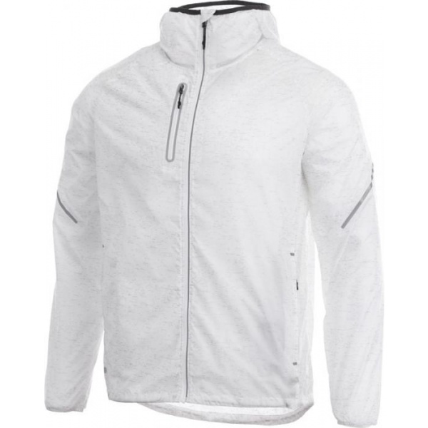 600 mm Water resistant. Reflective details. Packable into lower left pocket. Ventilation at back. Elasticated cuffs. Elasticated binding in contrast colour. Hand pockets with zippers. Chest pocket with zipper closure. Centre front contrast reversed coil zipper. Easy grip zipper pullers. reflective graphic pattern woven with water resistant coating and water repellent finish of 100% Polyester, 40 g/m2.
