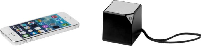 Sonic Bluetooth® portable speaker. Portable Bluetooth® speaker with internal, rechargeable battery which provides up to 3 hours of nonstop music. Built-in microphone allows for hands free calling and conference calls on the go. Speaker can be synced by Bluetooth® or connected with 3.5mm audio cable. Audio and charging cable included. Packed in a black carton box with a manual. ABS Plastic. ABS Plastic.