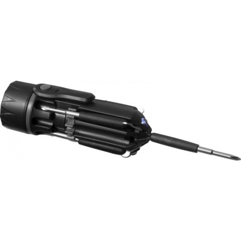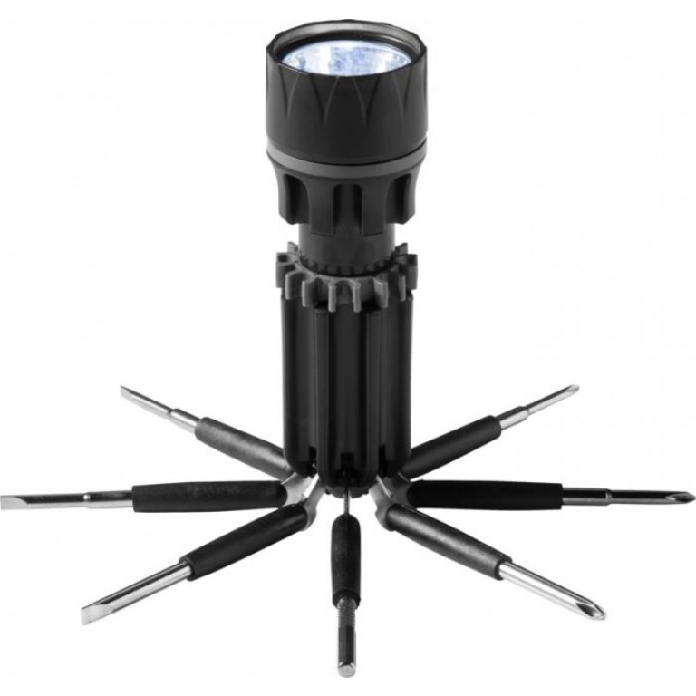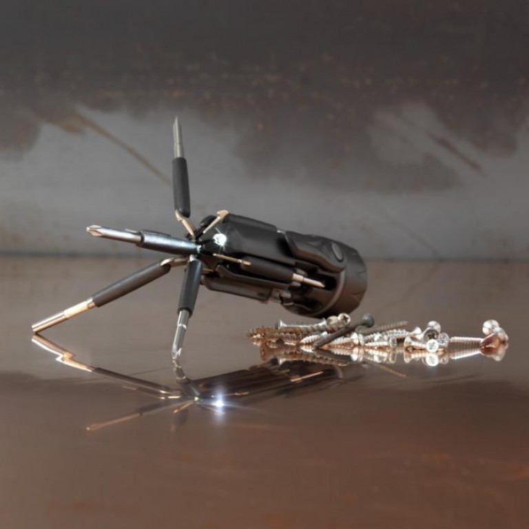 Spidey 8-in-1 screwdriver with torch. Perfect to keep this tool around the house, it has 1 LED light, 3 Phillips heads, 3 flat heads, and a small eye glass tool with screw on cap. Press the button once for the flashlight, and again for the LED to illuminate the tools. Packed in a STAC gift box. Batteries included and included. Exclusive design. ABS Plastic. ABS Plastic.