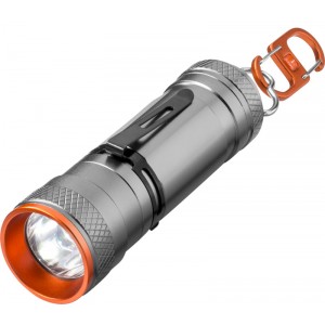 Weyburn 3W cree LED torch light. Dual use torch/lantern has super bright 3W CREE LED with light 4 light modes and zoom function. The lantern can be used either standing or hanging using the exclusively designed double carabiner. Includes removeable metal spring with front and back positioning. Manual in EN/FR/DE/IT/ES/NL is added for your convenience. Packed in an Elevate gift box. Batteries included and inserted. Exclusive design. Aluminium.