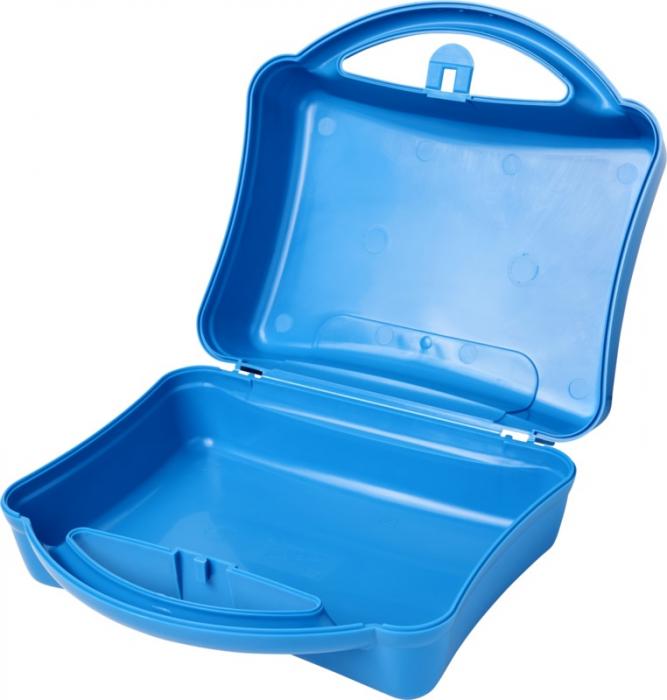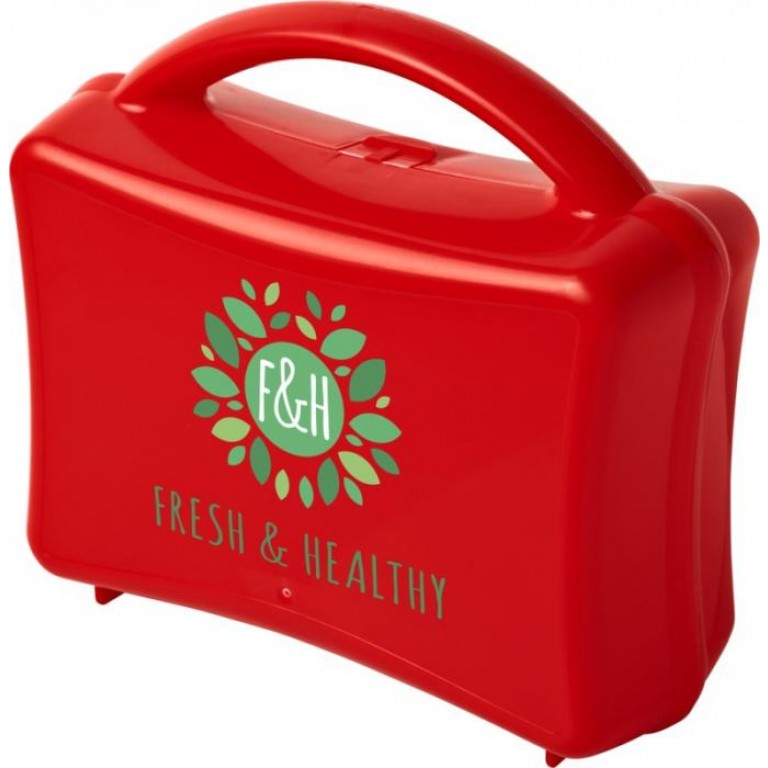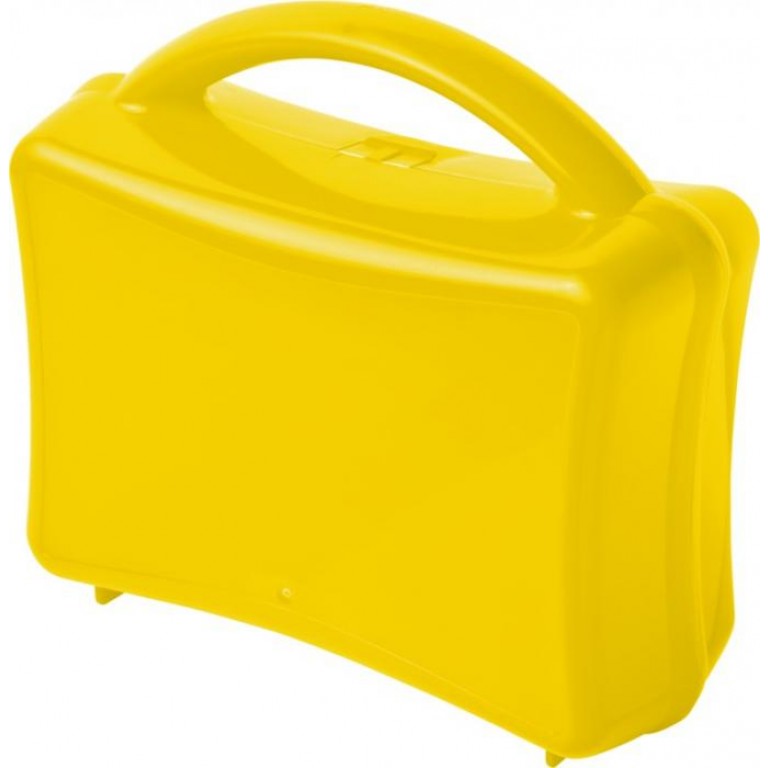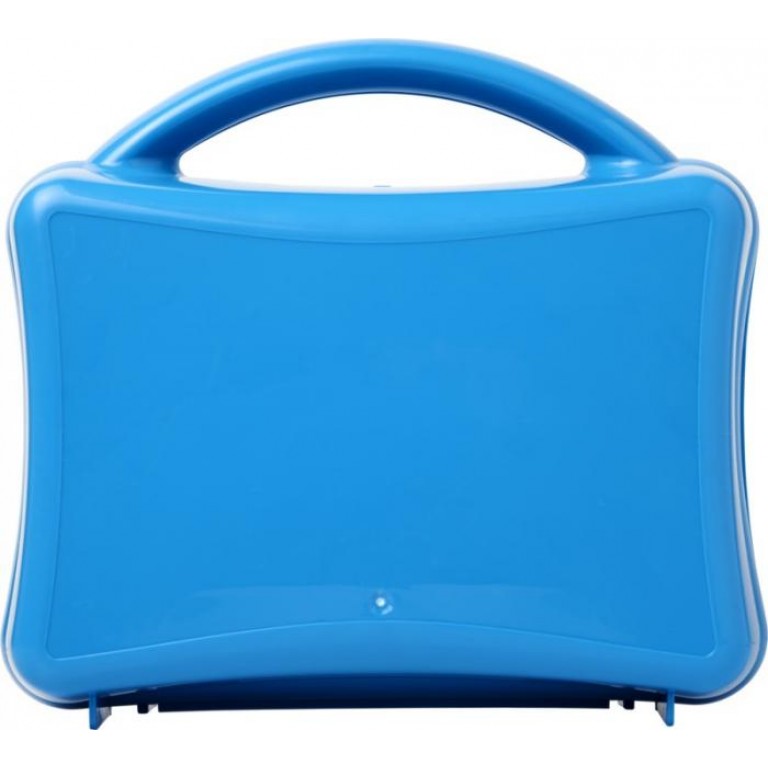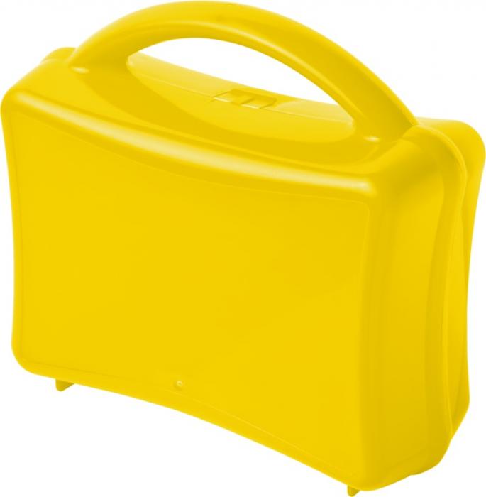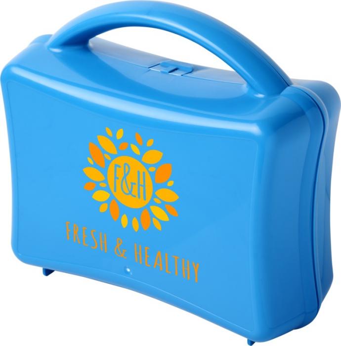 UK-made suitcase-shaped lunchbox with space to include a sports bottle up to 500 ml. PP Plastic.