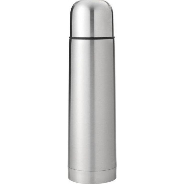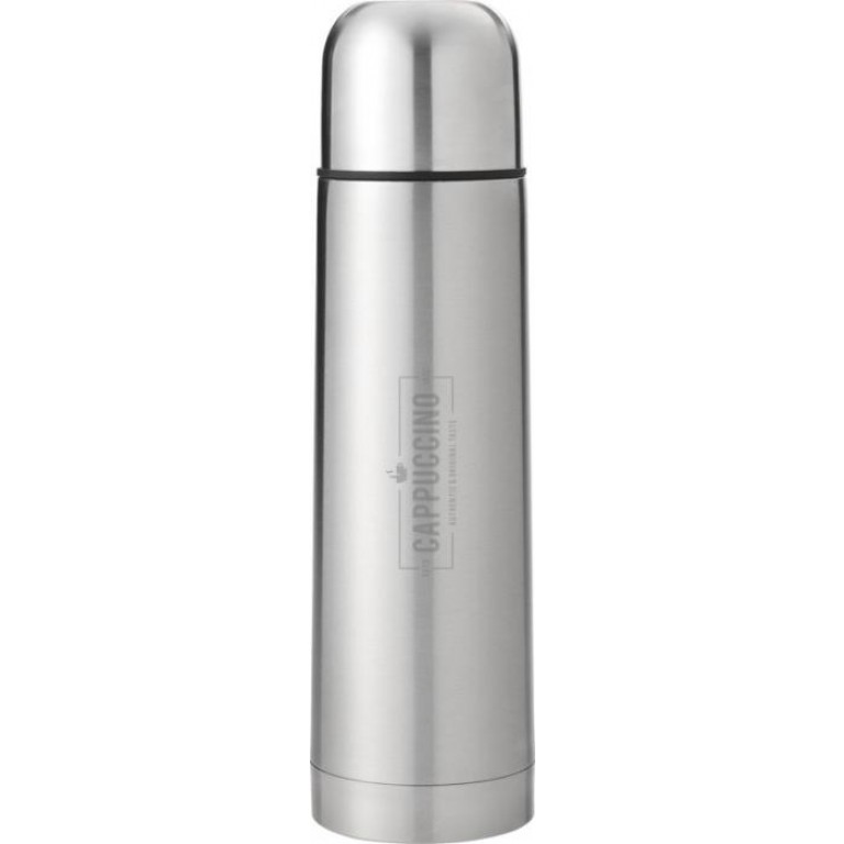 Double walled insulated flask with cup lid. Single-hand, push-button pour spout which closes automatically when screwing the cup lid on to the bottle. Volume capacity is 750 ml. Stainless Steel.