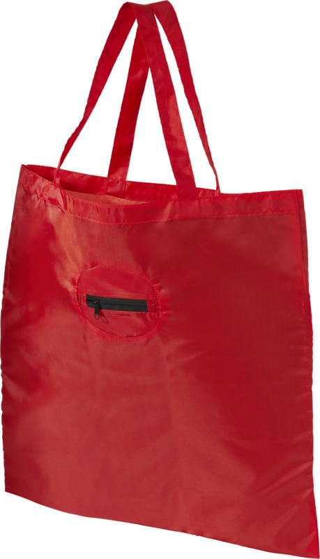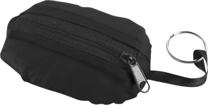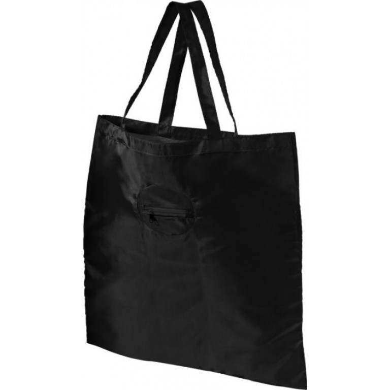 Shopping Tote bag with unique foldaway function allows the bag to be folded then gathered into a zipped pouch and carried on a keychain. Reusable and a great alternative to plastic bags. Handle drop down height is 22cm. Size when folded: W11 x H8cm. Item delivered unfolded, packed flat. 210D of Polyester.