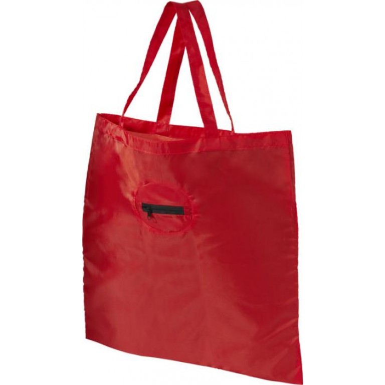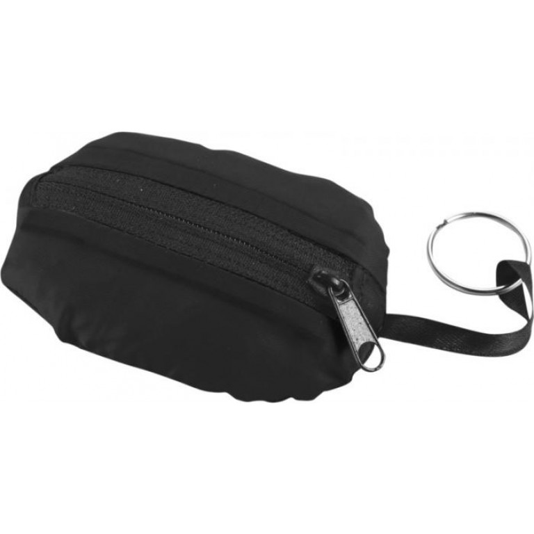 Shopping Tote bag with unique foldaway function allows the bag to be folded then gathered into a zipped pouch and carried on a keychain. Reusable and a great alternative to plastic bags. Handle drop down height is 22cm. Size when folded: W11 x H8cm. Item delivered unfolded, packed flat. 210D of Polyester.