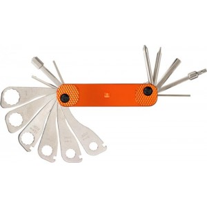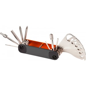 Norquay 17-function bike repair tool. With 17 tools and functions you have everything you need while facing bike problems. This work tool has 6 box wrenches added in different sizes. The aluminum plates have textured areas for the perfect grip. Feature card in EN/FR/DE/IT/ES/NL is added for your convenience. Packed in an Elevate gift box. Exclusive design. Aluminium, Stainless steel. Aluminium, Aluminium.