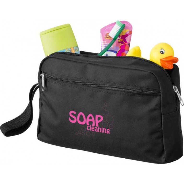 Transit toiletry bag. Toiletry bag with strap, zippered main compartment and front zipper closure. 300D Polyester. 300D of Polyester.