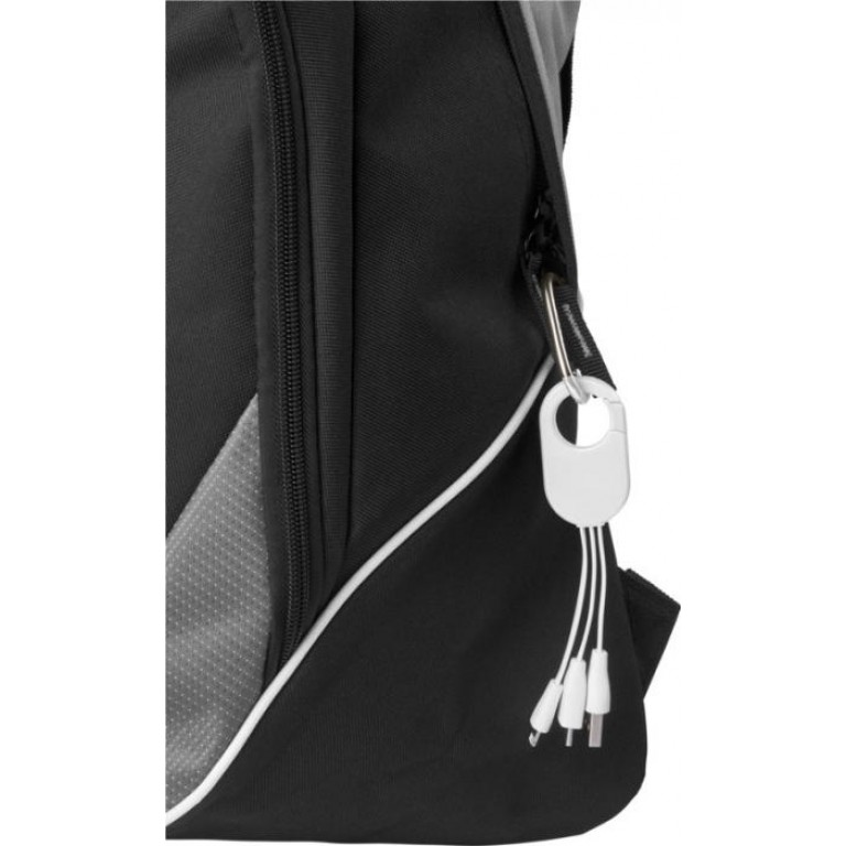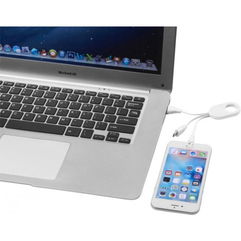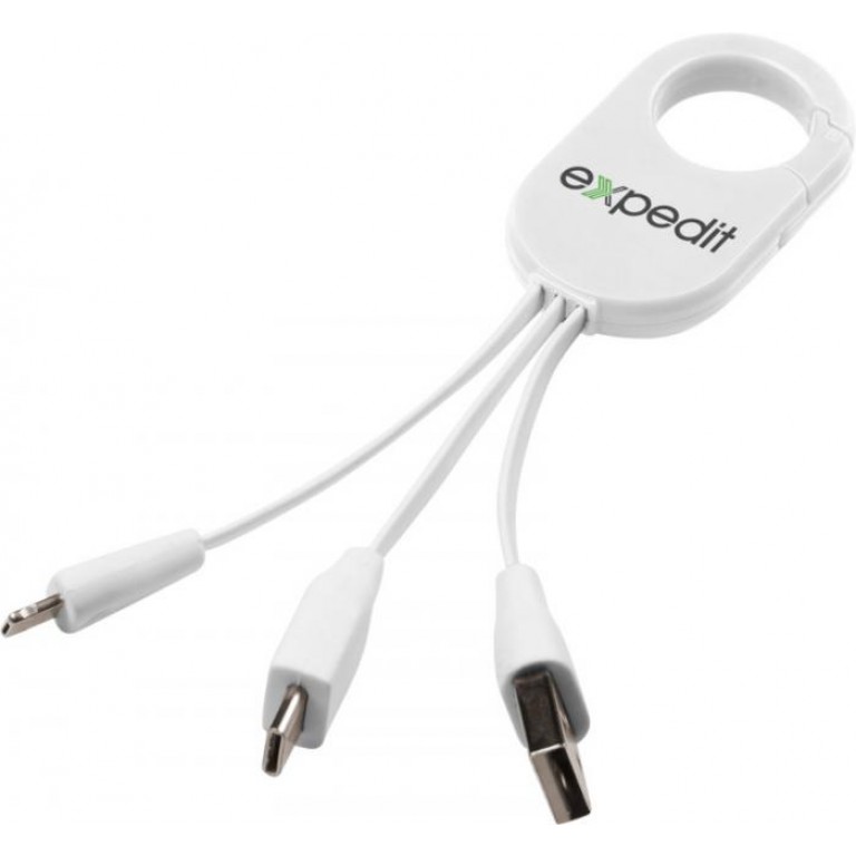 The Troop 3-in-1 charging cable features a USB type C tip and a 2-in-1 dual compatible tip for both Apple® iOS and Android devices. It has a carabiner clip to easily hook on your bag. ABS Plastic.