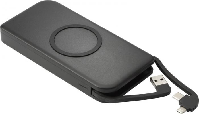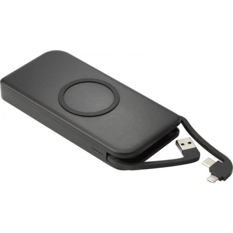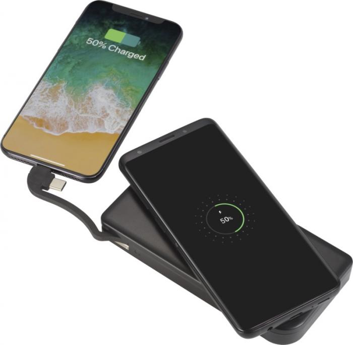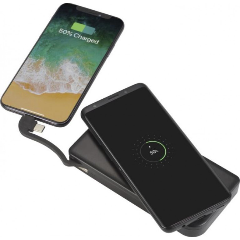 The Umbra power bank contains a 10.000 mAh Grade A Lithium-Polymer battery, wireless charging transmitter/receiver and a 3-in-1 integrated cable for all Apple® iOS and Android devices. Charging can be done wireless or with a cable. The power bank itself can be charged with the integrated USB A cable or place the power bank on any wireless charging pad/charger for wireless recharging. Cable output of 5V/2A, wireless input of 5V/0.8A, wireless output of 5V/1A. Supports wireless charging up to 1A for devices that have wireless charging functionality. For devices that don’t support wireless charging, an external wireless charging receiver or receiver case is required. Including Micro USB charging cable. It works with most plastic phone cases on. ABS Plastic.