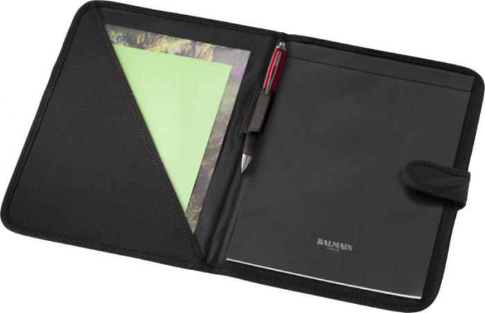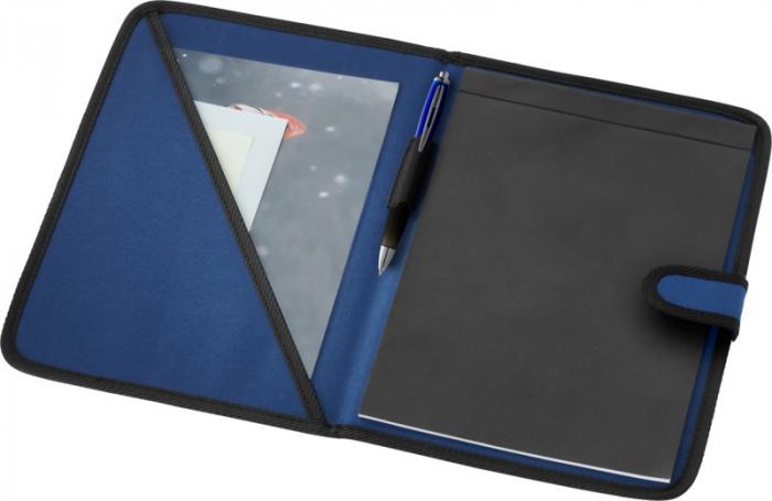 Portfolio with hook & loop closure, pen loop, document pocket and 20 pages lined notepad. Pen and accessoires not included. 600D of Polyester.