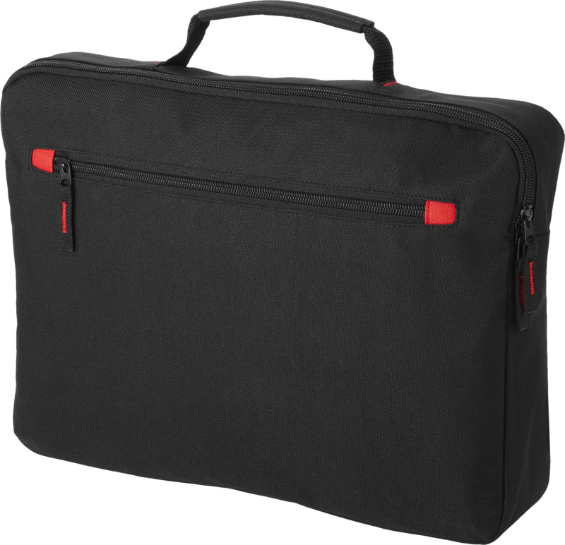 Classic design conference bag with zippered main compartment and front zipper pocket. 600D of Polyester.
