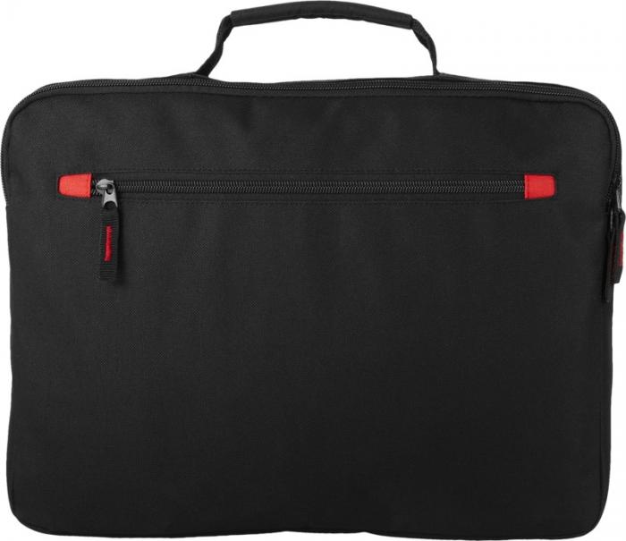 Double compartment laptop bag with zippered padded compartment which fits most 15.4″ laptops. A zippered document compartment and a zippered front pocket. Adjustable and removable shoulder strap. Dual carrying handles. 600D of Polyester.