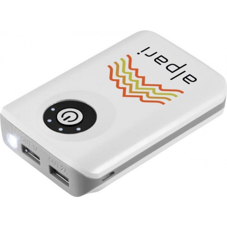 Volt 2200 mAh power bank. The 2200 mAh battery capacity on this power bank is enough to charge a mobile device or tablet (5V/1A). Power bank charges via included USB cable and blue light indicator turns on when fully charged. Includes white carton box. Aluminium.
