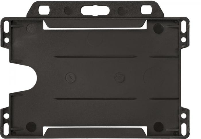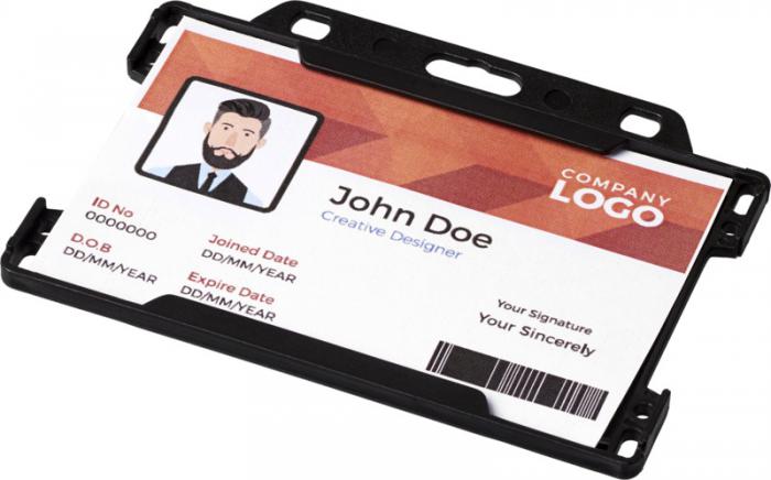 Vega plastic card holder. A British-made card holder which is ideal for exhibitions, workplaces, and networking events. Available in landscape or portrait, and suitable for standard business card and credit card sized passes. GPPS Plastic.