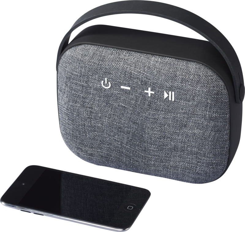 Woven Fabric Bluetooth® Speaker features exceptional sound and an on trend style. The body of the speaker is wrapped with a woven fabric cloth finish. The speaker’s 5-watt driver packs a punch while the built-in music control and microphone allows you to control the music and hold a conference call from any location without touching your phone. Bluetooth® working range is 10 metres. Includes Micro USB to USB charging cable. Playback time at max volume is 2 hours and charging time is up to 2 hours. ABS Plastic.